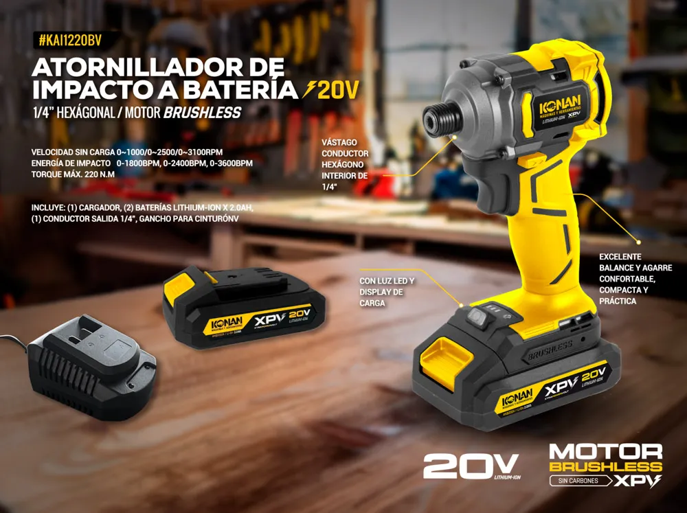 Atornillador de Impacto 1/4" a Batería 20V Brushless Konan XPV