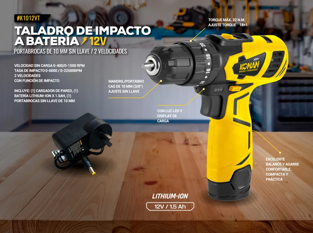 Taladro de Impacto Percutor a Batería 12V Konan XPV
